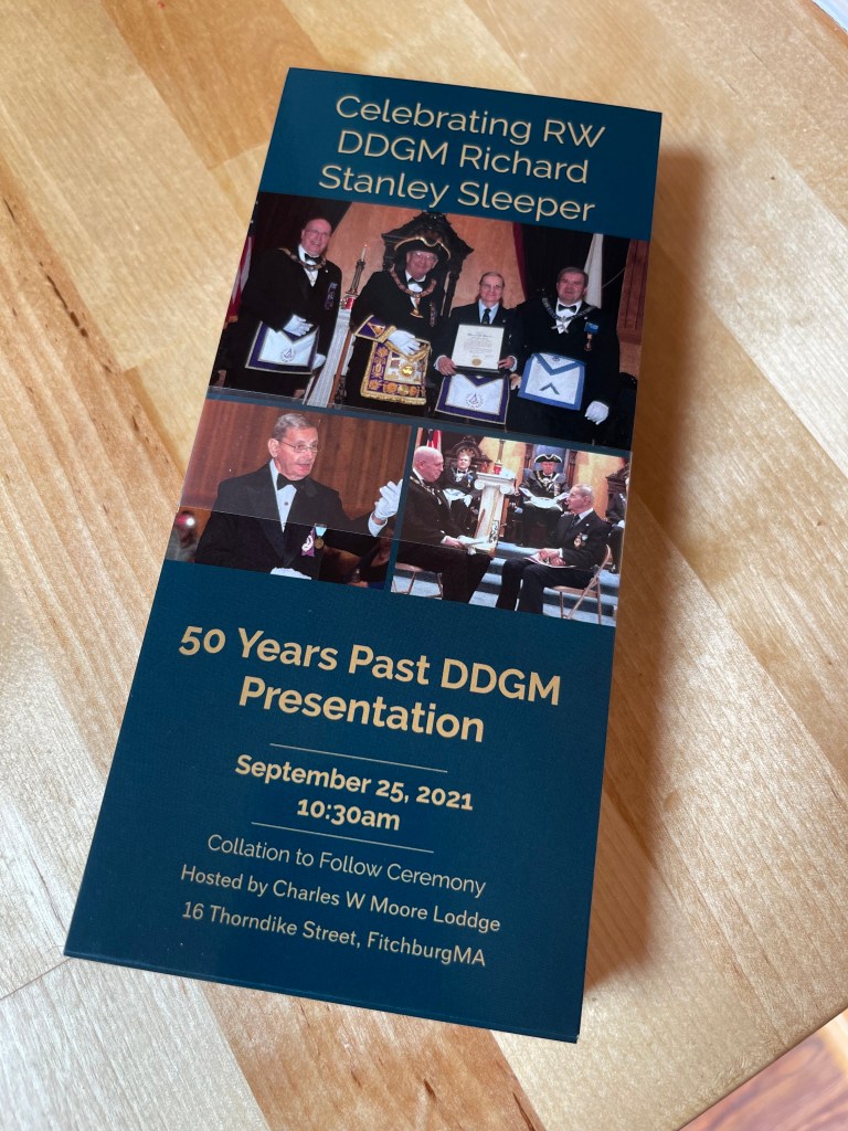 On September 25, 2021 we had the pleasure of celebrating RW Richard Stanley Sleeper for his 50 years of service as a past DDGM.