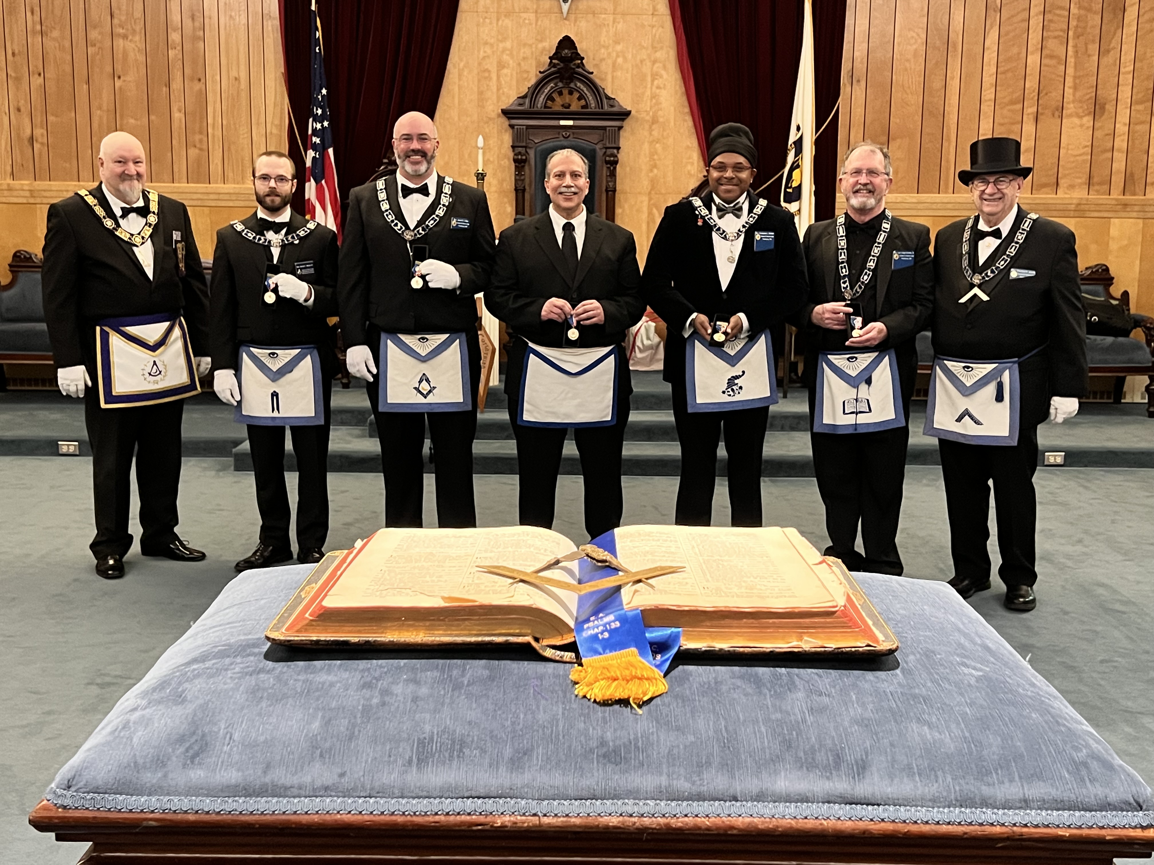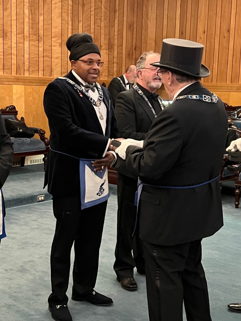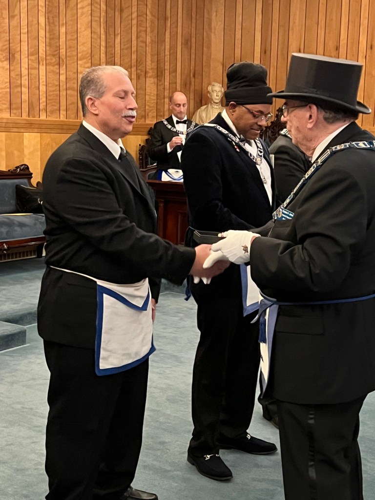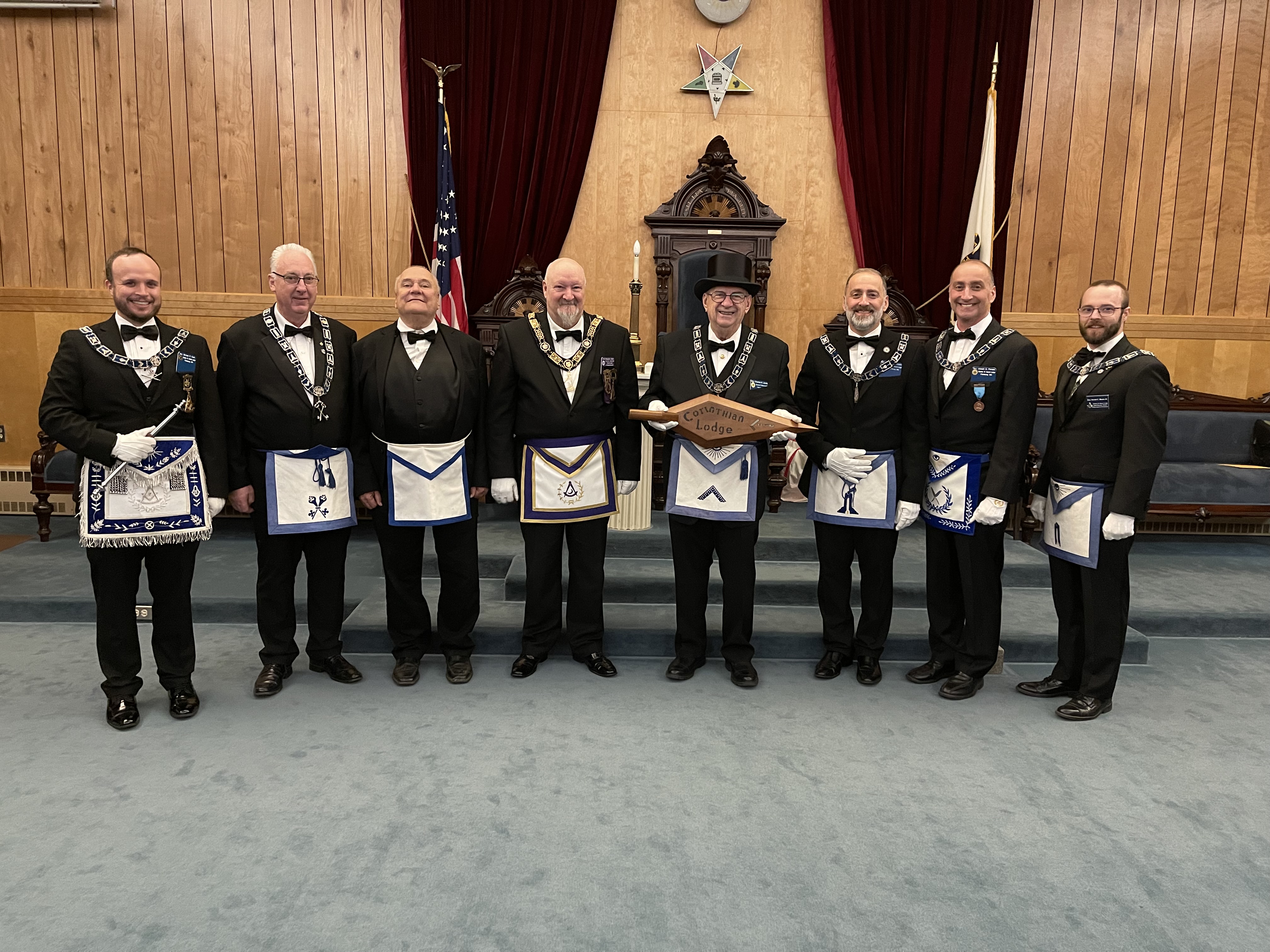 On November 13th 2023, 8 members of Charles W. Moore lodge and the District Deputy Grand Master of the 22nd Masonic District traveled to Corinthian lodge to claim their “Traveling Trowel”. The Presiding Master Anthony Rooney and his officers welcomed us with open arms and a feast.