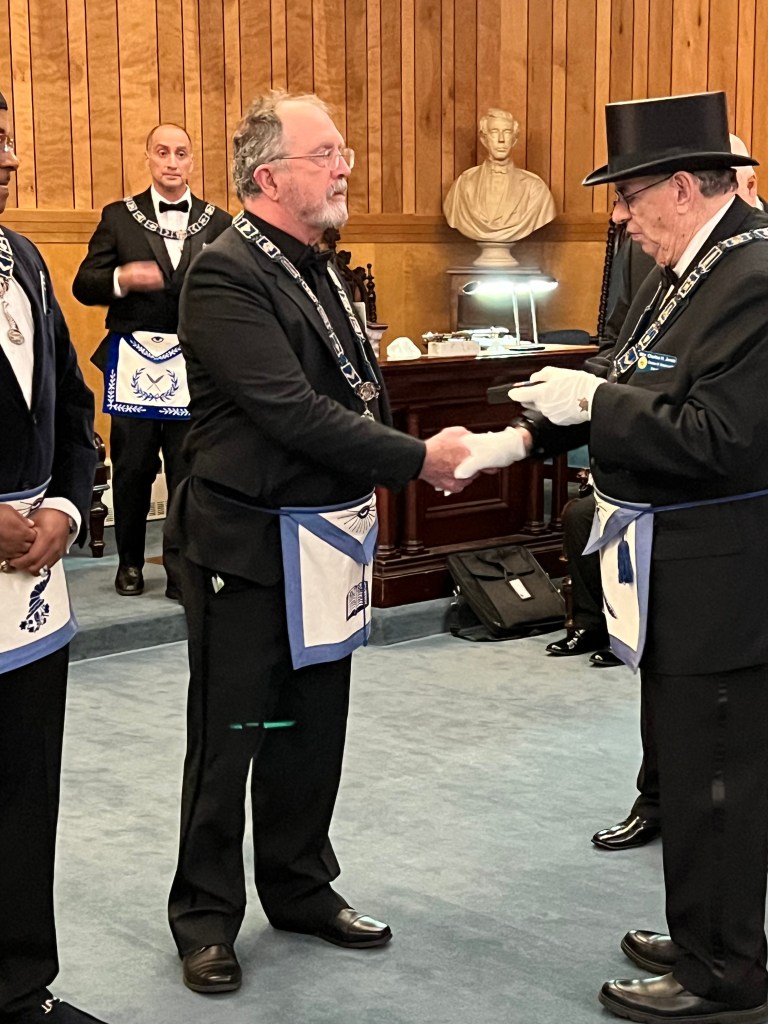 On October 7th 2023 W:.M:. Dennis Rinki ceremoniously passed the torch of leadership to W:.M:. Charlie Jones after two successful years of leadership. The event was open to the public and well attended by all members of the Masonic fraternity, Masonic sub organizations, and the public in general.