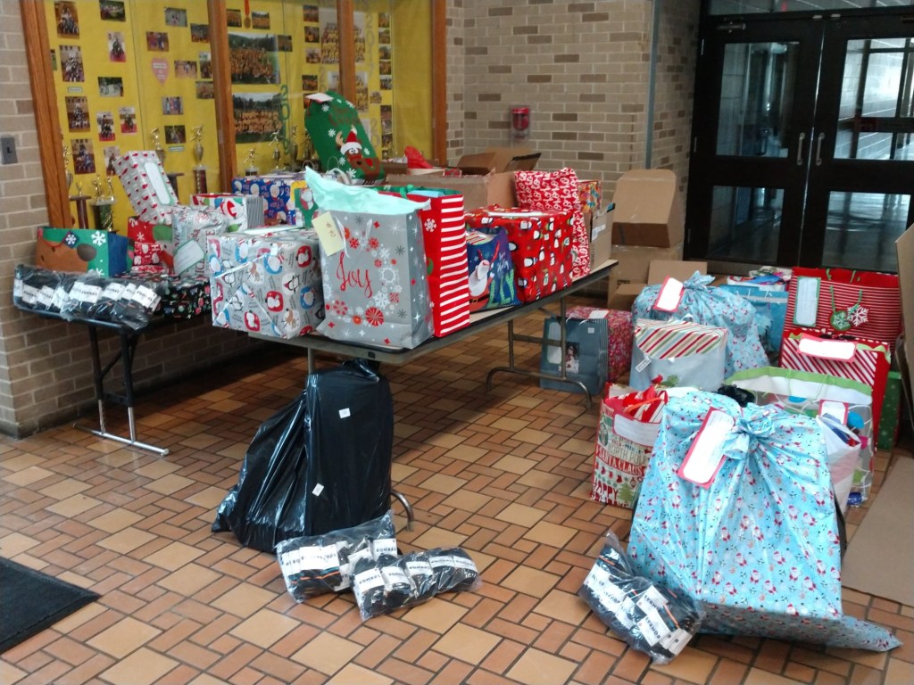Last week, Reingold Elementary School was greeted with a special delivery of over 70 gifts from a collaborative effort of the Avery Dennison Corporation, Charles W. Moore Lodge of Masons, the Aurora Masonic Lodge and Karing 4 Kidz “Blessing in a Backpack.”